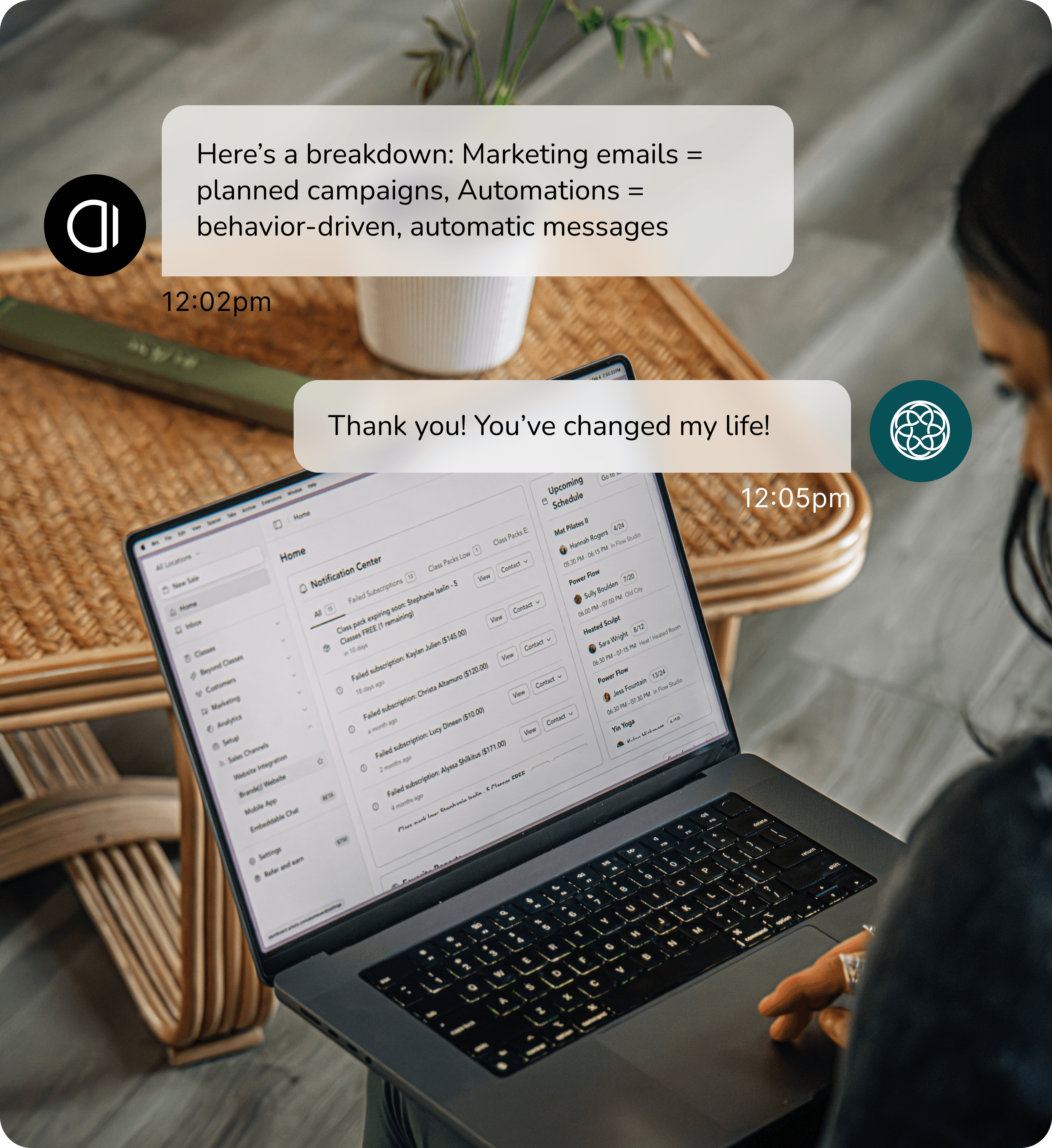 Scheduling, payments, marketing, automations, branded app — all working together as one seamless experience. Not just sitting together